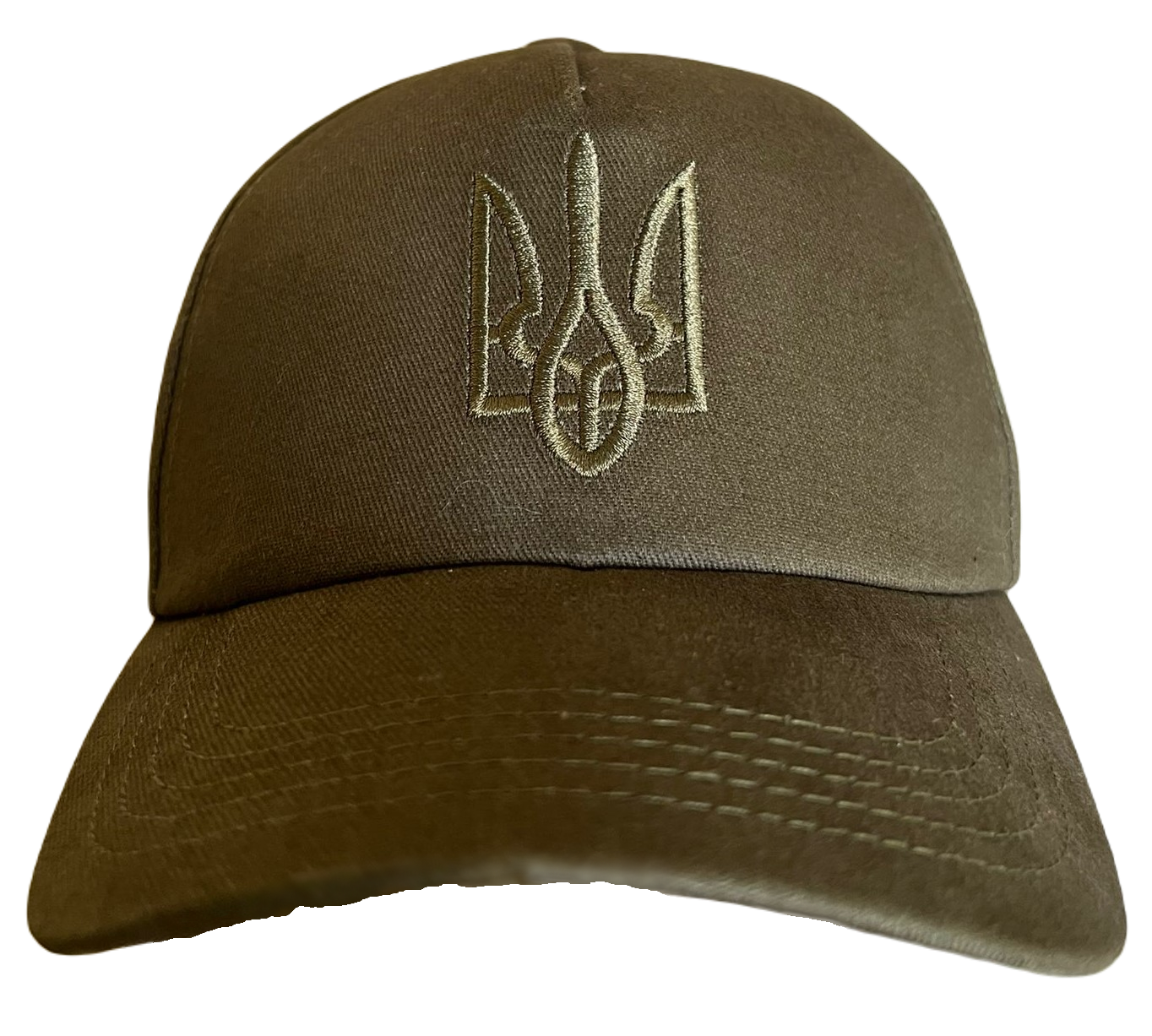 Ukraina -lippis maastonvihreän värisenä. Tuotteen etupuolelle on brodeerattu Ukrainan vaakuna. Kokoa säädeltävissä takaa löytyvällä soljella.